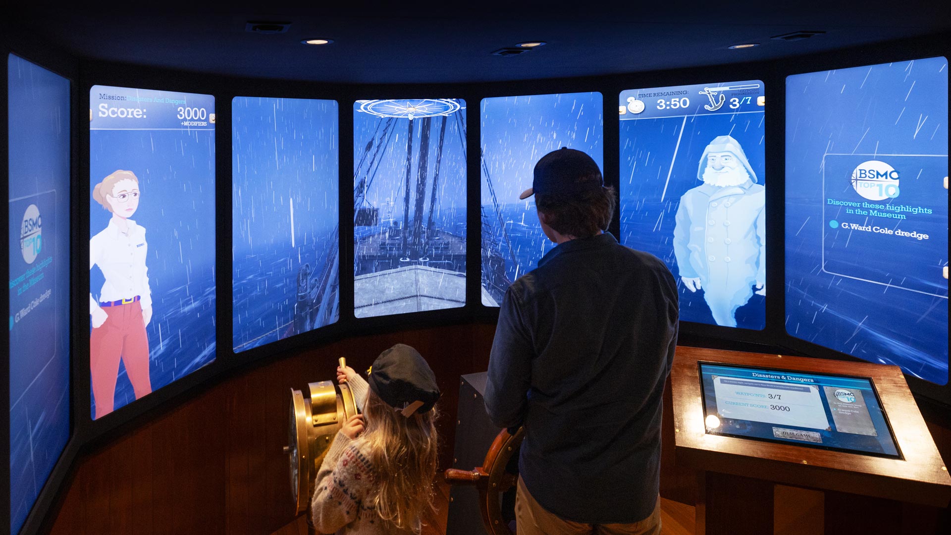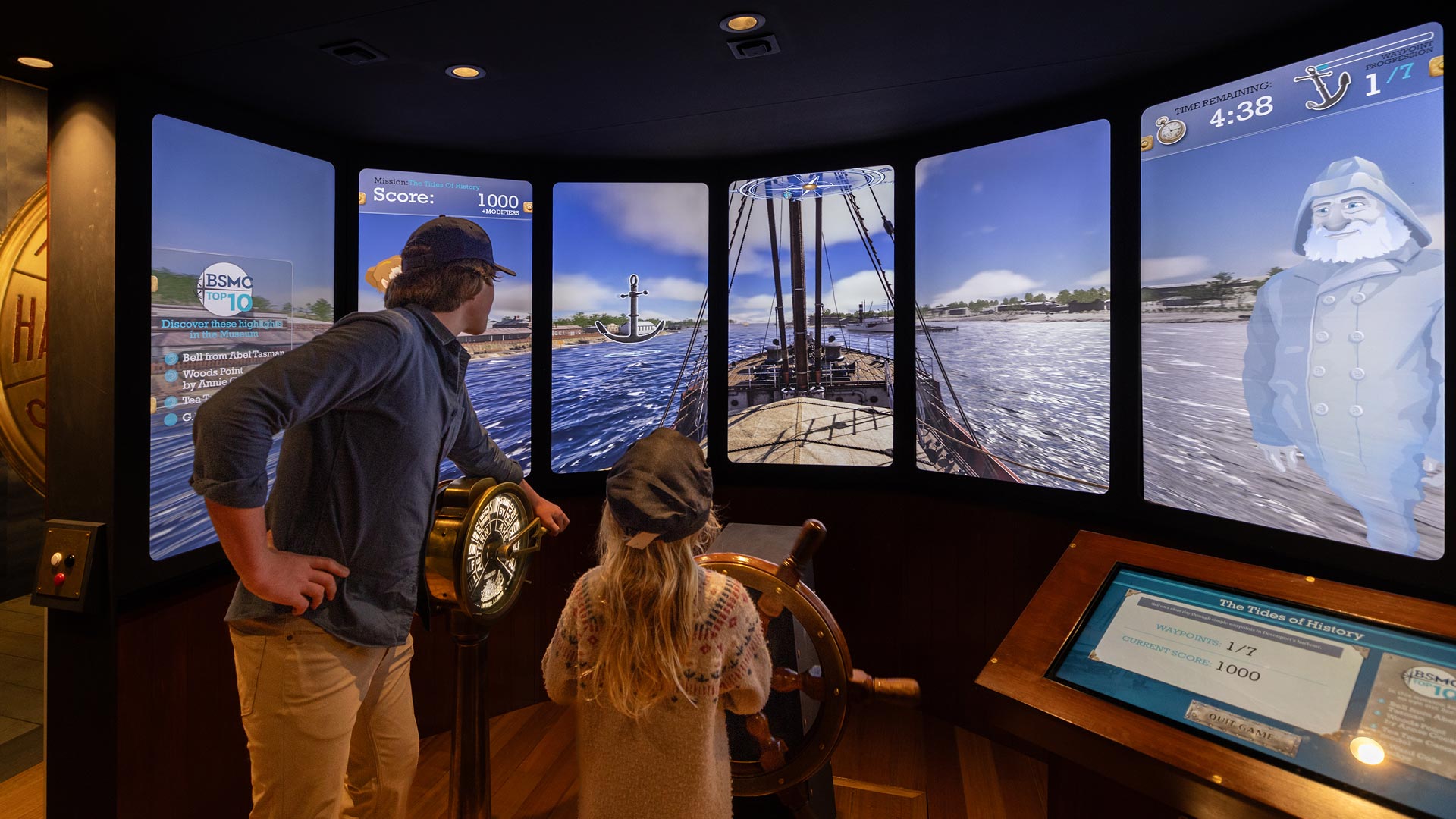 In addition to the main sailing missions, the experience includes three mini-games, accessible via physical buttons on the side of the installation. Each game offers a fun, thematic break from the main simulation. Together, all these elements – assets, animation, mini-games – contribute to an experience that’s educational, richly detailed, and genuinely fun to play.