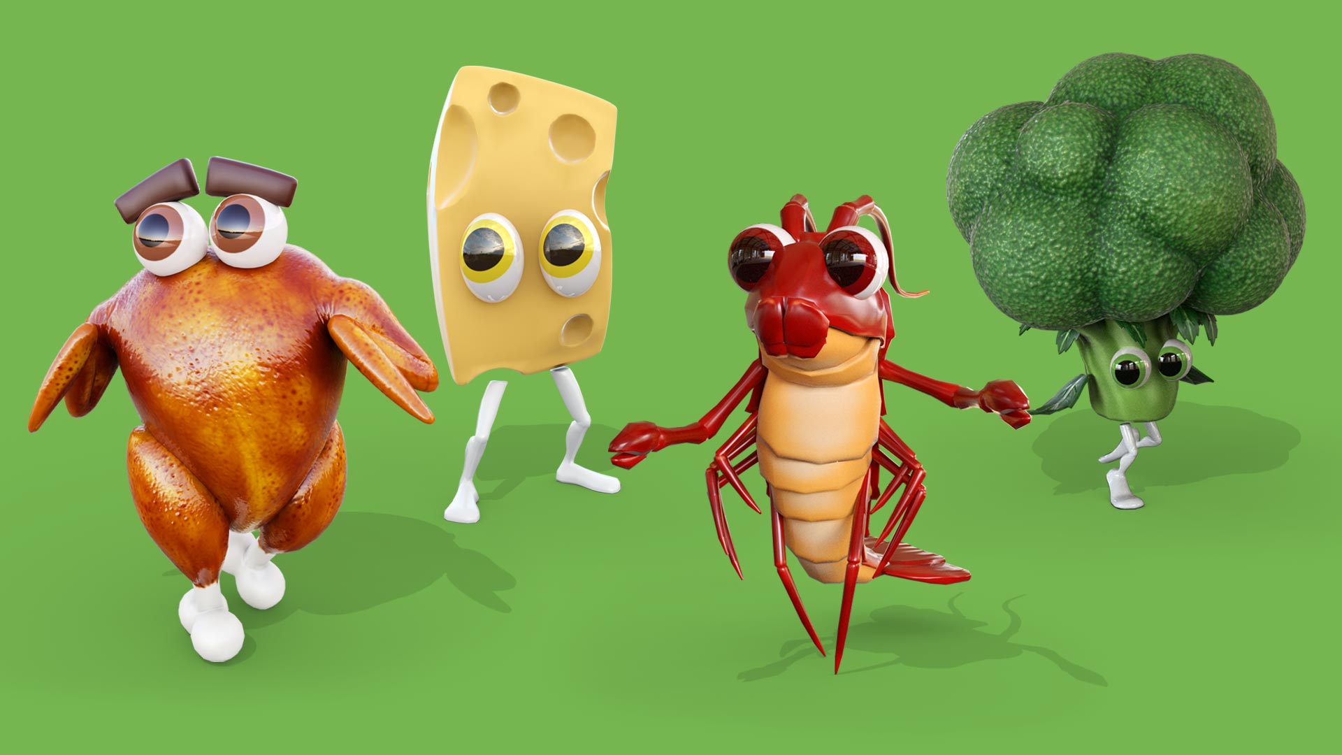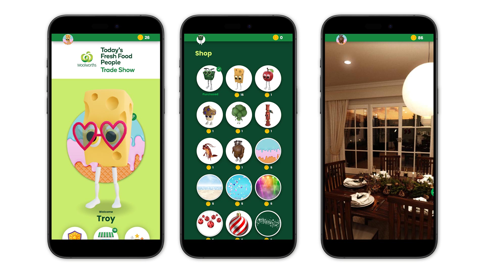 Players could pick from nine animated avatars inspired by Woolworths staples – like a Woolworths basket, a slice of cheese, a head of broccoli, and even a roast chicken. Each character was fully rigged and animated, and could be customised with a fun range of hats, glasses, backdrops, and emotes.